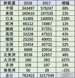 17年世界新能源車的動力格局基本沒有變化,氫燃料仍是0.3%的微小數量,技術線路格局的插混和純電動基本保持穩定。 這樣的世界穩定是中國與日本的反向推進的結果。中國是純電動增多,日本是搞增城電動車,形成較大的分化的特征。 以上表格是17年與16年的對比的狀態。世界基本是三分之一插混,三分之二純電動。中國是28分化,20%插混,81%純電動。 我感覺中國方向是對的。日本太扣了,一切以消費者利益為中心,日本缺乏引導行業發展的超前思路,中國更為超前意識。 5、17年全年的中國新能源份額47%